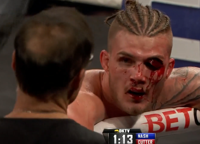 Битката на Джордан Наш беше спряна в BKFC поради ужасна травма на окото. Наш, който е с рекорд 2-0 в битките с голи ръце премери сили с Ноа Кътър на картата на BKFC във Флорида. Битката между тях беше прекратена в петия и последен рунд, а ранните индикации за контузията бяха скъсан клепач. Срещата беше оспорвана, но щетите, нанесени на Джордан Наш в крайна сметка се оказаха твърде големи, тъй като много удари попаднаха в окото му. С тази загуба