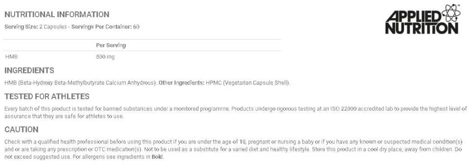 Applied Nutrition - HMB 500 mg / 120 капсули, 60 дози