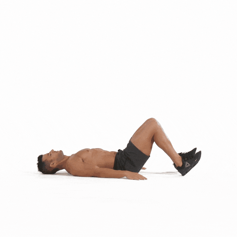 Постави краката си на широчината на таза и натисни с пети към пода. Повдигни таза с бедра, включвайки и глутеусите си. Снижи се обратно към земята и повтори. С това движение целим да раздвижим глутеус медиус.